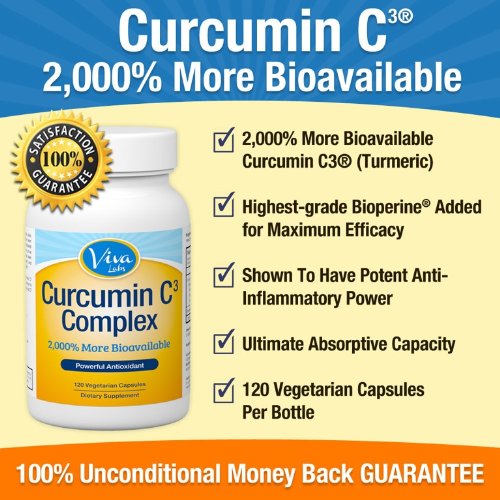 Curcumin C3® (Turmeric) w/ Bioperine® - 2,000 % More Bioavailable 500mg, 120 Vegetarian Capsules Details :