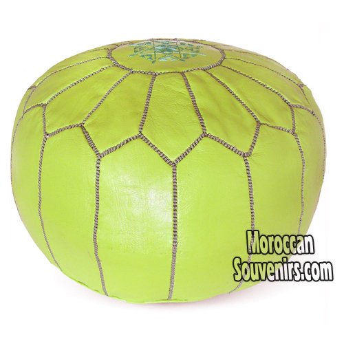 | Stuffed Moroccan Pouf, Pouffe, Ottoman, Poof, Color : Lime Green |